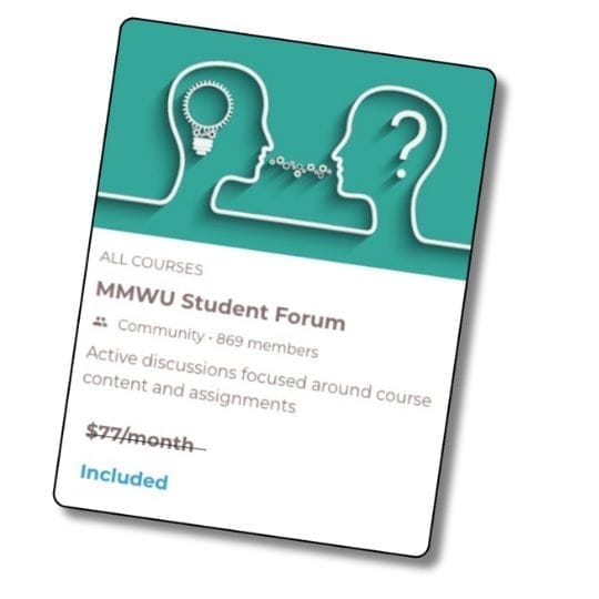 Access to the MMWU Student Community with +800 members from over 70 countries (Value $89/month)